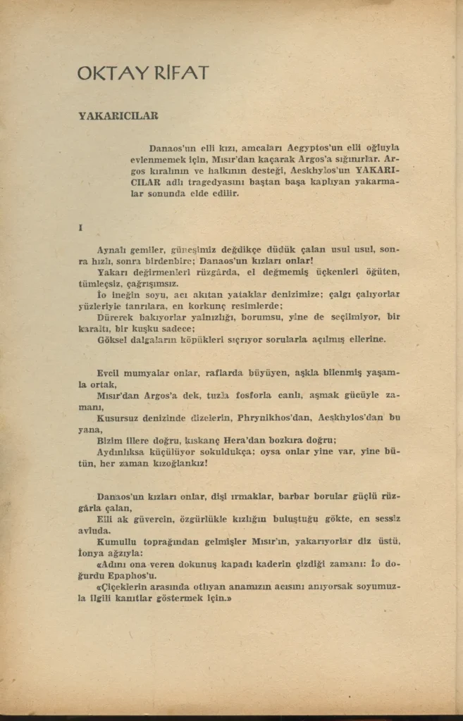 Türk şiirinin büyük ustalarından Oktay Rifat’ın, Yeni Dergi’nin Nisan 1965 tarihli 7. sayısında yayımlanan ve uzun süredir dergi sayfalarının arasında kalan “Yakarıcılar” adlı şiirini arşivlerden çıkararak yeniden gün yüzüne getiriyoruz.
