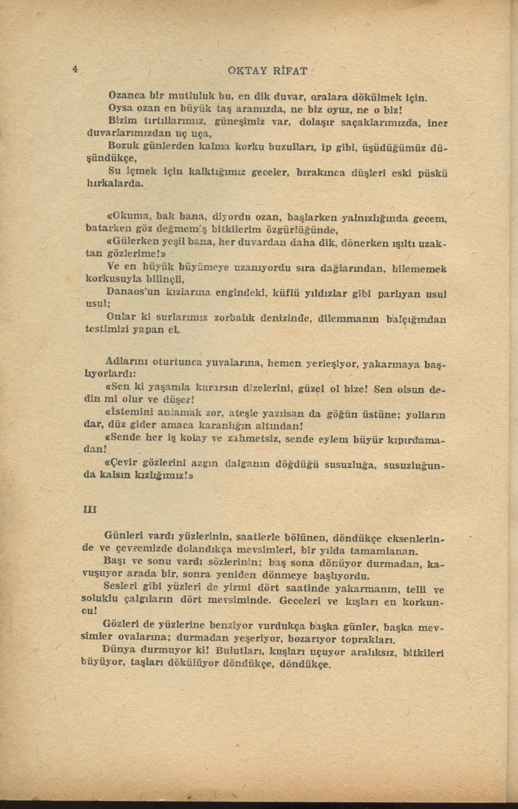 Şimdi sözü, yıllar öncesinden bize seslenen Oktay Rifat’ın dizelerine bırakıyoruz.